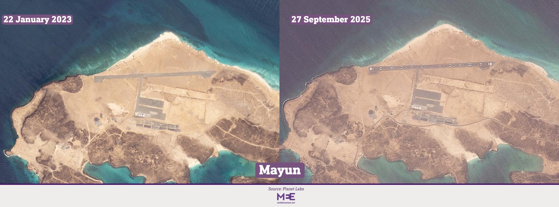 وتُظهر صور الأقمار الصناعية أن الإمارات بدأت في بناء مدرجٍ جوي على الجزيرة في عام 2024، وتم الانتهاء من المدرج في أبريل/نيسان 2025، إلى جانب تعبيد الطرق وإقامة المنشآت الداعمة الأساسية.